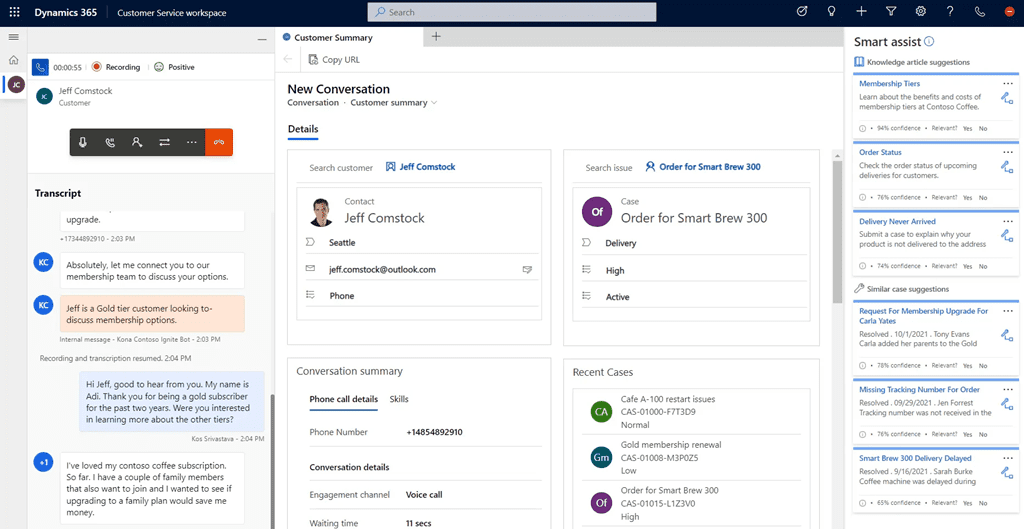 Les capacités vocales natives améliorent la cohérence du service. Les responsables suivent la performance des flux téléphoniques, identifient les variations de charge et ajustent les ressources en quelques actions. L’ensemble crée une expérience voix plus stable, plus intelligente et totalement intégrée au reste de l’écosystème Dynamics.
